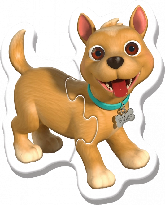 Vier separate Puzzles mit 2, 3, 4 und 5 Teilen helfen Kindern Schritt für Schritt voranzukommen und Selbstvertrauen zu gewinnen.