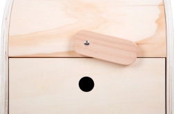 Auf der Rückseite befindet sich eine clevere Klappe, die mit dem Zebraschwanz geöffnet und geschlossen wird – praktisch und spielerisch zugleich. Der dezente Print und das Naturholz fügen sich wunderbar in moderne Kinderzimmer ein.