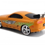 Detailreiche orangefarbene Toyota Supra inspiriert von BRIANS Wagen aus FAST & FURIOUS mit authentischen Decals und Heckflügel.