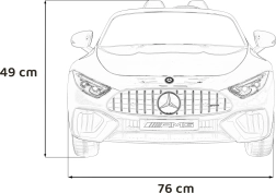 Großzügige Abmessungen von 123 × 76 × 49 cm, eine Traglast bis 35 kg und die geräumige Sitzfläche (46 × 19 × 25 cm) machen dieses Modell zur idealen Wahl für Kinder, die eine realistische Fahrt im ikonischen AMG‑Stil wünschen.