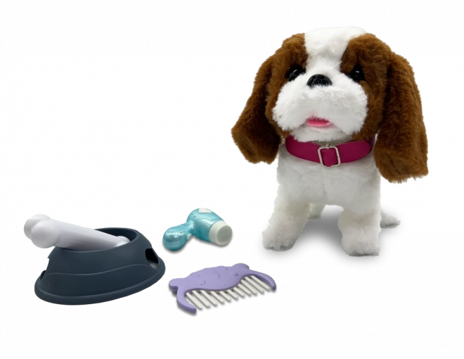 Zum Set gehören Kamm, Futternapf und Knochen, mit denen Kinder die Pflege eines Haustiers üben können – vom Füttern über das Kämmen bis zum Kuscheln. Das Spiel mit Hund Ťapka fördert auf natürliche Weise Vorstellungskraft, soziale Kompetenzen, Empathie sowie die Feinmotorik.
