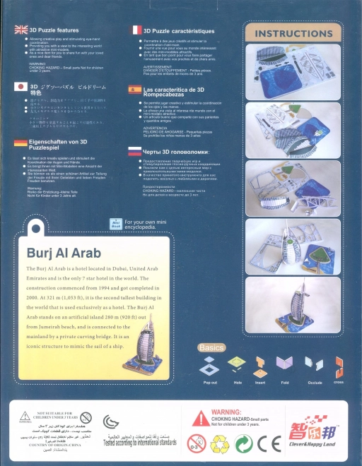Das 3D-Puzzle Burj Al Arab begeistert garantiert jeden Architekturfan. Dieses detailreich gestaltete 3D-Modell des ikonischen, segelförmigen Hotels bringt ein Stück Dubai direkt in Ihr Zuhause.