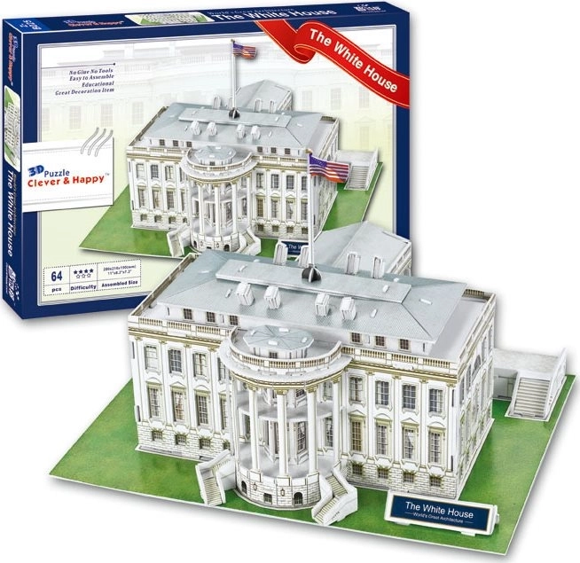 Clever&Happy 3D-Puzzle Weißes Haus ist eine perfekte Nachbildung der ikonischen Residenz des US-Präsidenten, die Sie ohne Schere und Klebstoff zusammenbauen können. Diese detaillierte 3D-Replik bietet eine anspruchsvolle Herausforderung mit einem Schwierigkeitsgrad von 4,7 Punkten, die alle Architektur- und Bauenthusiasten lieben werden.