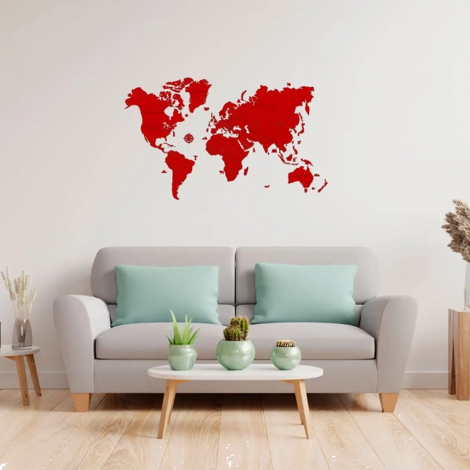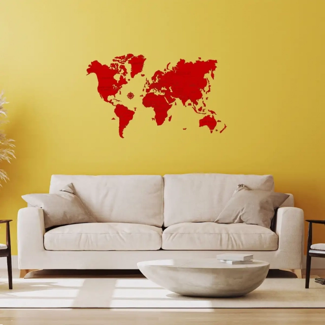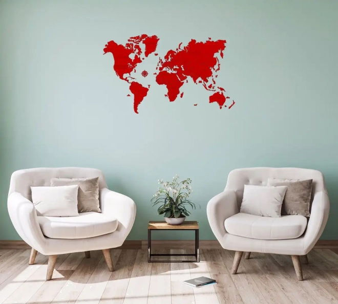 Setzen Sie zu Hause oder im Büro ein starkes Design-Statement. Diese handbemalte Holzweltkarte in Rot überzeugt mit klaren Linien, modernem Look und der einfachen Montage mittels beiliegendem doppelseitigem Klebeband. Dank präzisem Laserschnitt aus Birken-Sperrholz besticht sie durch Detailtreue und Robustheit.