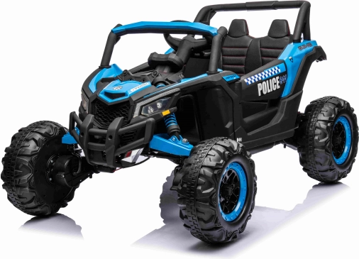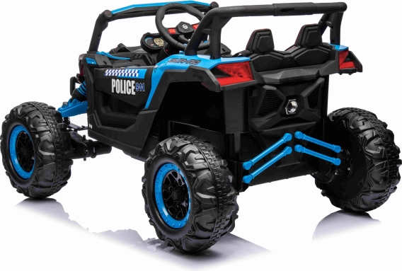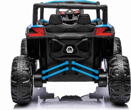 Eltern schätzen die 2,4-GHz-Fernbedienung mit 3 Geschwindigkeiten und Notfall-Stop-Taste. Kinder freuen sich über das Panel mit MP3/USB/Bluetooth, Sounds im Lenkrad sowie realistische LED-Beleuchtung vorne und hinten. Der Premiumsitz aus Ökoleder, Sicherheitsgurte und zu öffnende Türen erhöhen Komfort und Sicherheit.