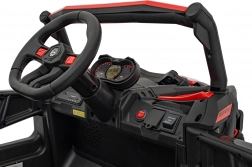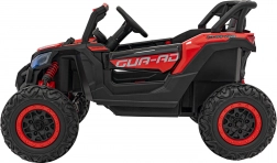 Dieses rote Geländefahrzeug für Kinder ist gemacht für Abenteuer im Garten und auf unbefestigten Wegen. Die Kombination aus 4x4-Antrieb, vier 4×35 W-Motoren und weichen EVA-Rädern gewährleistet hervorragenden Grip, leisen Betrieb und Stabilität. Hintere Stoßdämpfer glätten Unebenheiten, und die Bodenfreiheit von 20 cm hilft, kleinere Hindernisse zu überwinden.