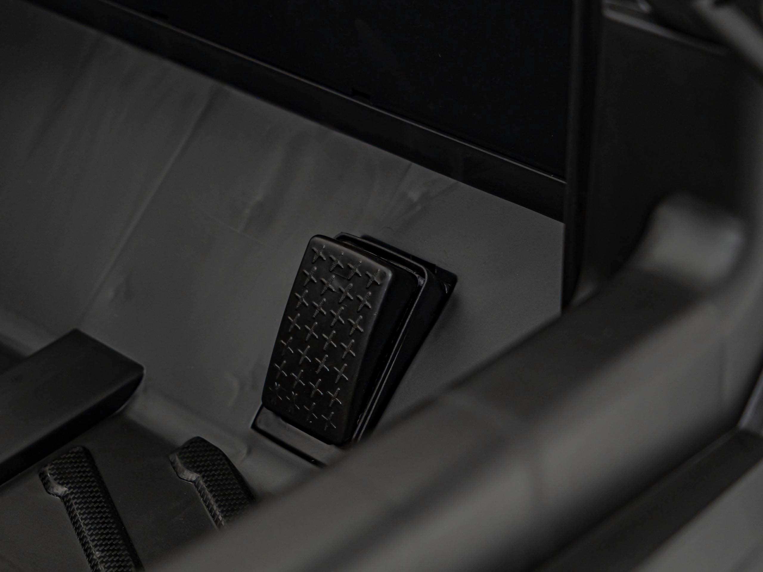 Eltern schätzen die 2,4-GHz-Fernbedienung mit One-Touch-Stopp und der Wahl aus 3 Geschwindigkeiten. Kinder freuen sich über den realistischen Start mit Motorengeräusch, LEDs vorne und hinten, öffnende Türen sowie das umfangreiche Audio-Panel mit MP3/USB/Bluetooth und Lenkradgeräuschen. Der Sitz aus Eco-Leder mit Gurten sorgt für Komfort und Sicherheit.