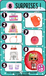 Jede rosa Kugel sorgt für ein schrittweises Enthüllen von 8 Überraschungen, die Kinder vom ersten Abziehen des Streifens bis zum letzten Accessoire in Spannung halten.