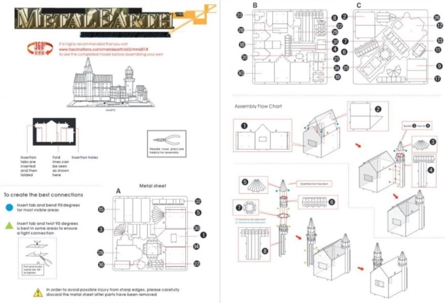 Erleben Sie den Nervenkitzel mit dem 3D-Puzzle Schloss Neuschwanstein von Metal Earth. Dieses Modell ist ein faszinierendes und dekoratives Stück, das jeden Liebhaber historischer Architektur begeistern wird. Es besteht aus detailreich gearbeiteten Stahlblechen, die leicht mit Schlössern verbunden werden können. Das Paket enthält 3 Stahlbleche und eine Anleitung, aber Werkzeuge sind nicht enthalten.