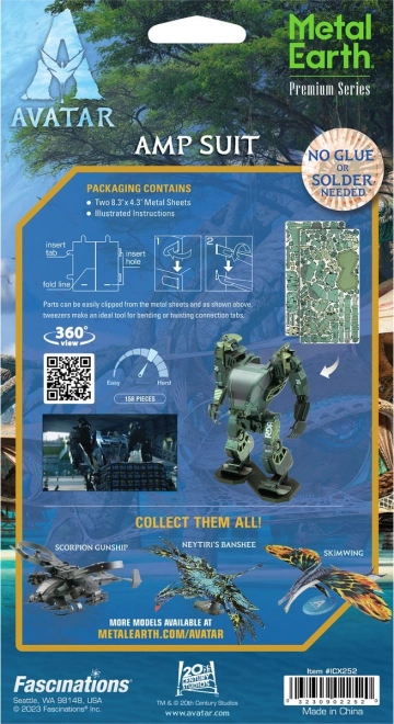 Die Premium‑Serie von Metal Earth bringt das realistische Modell AMP Suit aus dem Avatar-Universum, ausgeschnitten aus Stahlblechen mittels Lasergravur. Jedes Teil greift exakt ins andere, sodass Sie ohne Klebstoff und Löten ein beeindruckendes Sammlerstück mit authentischen Details und charakteristischem militärischem Look erschaffen.