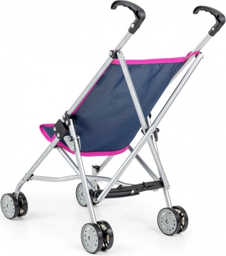 Dank des Schirmklapp-Mechanismus lässt sich der Wagen flach zusammenklappen und im Schrank oder Kofferraum verstauen. Eine Sicherung gegen unbeabsichtigtes Zusammenklappen erhöht die Sicherheit beim Spielen. Das Modell Prestige Navy in elegantem Dunkelblau ist die ideale Wahl für kleine Puppeneltern.