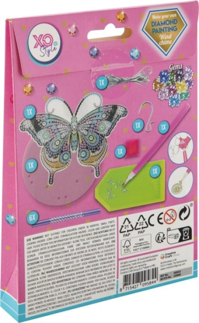 Der Kreativprozess mit Diamantmalerei ist einfach. Das Windspiel ist mit einer durchsichtigen Folie versehen, die die klebrige Oberfläche schützt. Sie schütten die gewünschten farbigen Steine in die Schale, nehmen Wachs mit dem Stift auf und kleben Schritt für Schritt die Steine anhand der Vorlage auf den Untergrund.