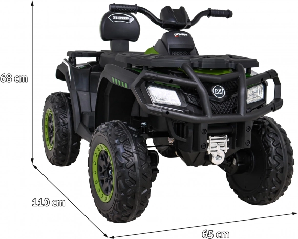 Dieses Quad verfügt über sanften Anlauf, einen Zweigang-Modus und einen Rückwärtsgang, was eine komfortable und sichere Fahrt garantiert. LED-Frontlichter und weitere detailliere Elemente sorgen auch bei Dämmerung für ein realistisches Aussehen.
