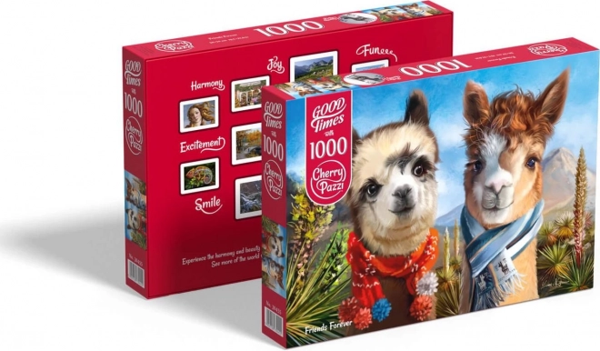 Das stylische CHERRY PAZZI Puzzle „Freunde für immer“ begeistert mit einem zauberhaften Motiv von zwei Alpakas in farbenfrohen Schals vor Bergen und blauem Himmel. Dank der durchdachten Teileaufteilung und des hochwertigen Drucks ist das Puzzeln flüssig und unterhaltsam – für Einsteiger wie für erfahrene Puzzler.