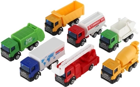 Eine vielseitige Kollektion von sechs verschiedenen LKWs, von denen jeder einzigartige Funktionen und Designs bietet.
