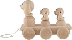 Das niedliche Ziehspielzeug aus Holz bereitet jedem kleinen Kind Freude. Beim Fahren bewegen sich die drei Hündchen putzig, was die ersten Schritte fördert und Motorik sowie Koordination entwickelt. Hochwertiges natürliches Holz und eine glatte Verarbeitung sorgen für sicheres und spaßiges Spielen.