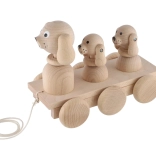 Dieses klassische Ziehspielzeug aus Naturholz ist der ideale Begleiter für Kinder, die das Laufen entdecken. Beim Ziehen bewegen sich die drei Hunde synchron, was Kinder zu weiteren Schritten motiviert und ihnen Freude an der Bewegung bringt. Dank der robusten Ausführung und angenehmen Formen liegt das Spielzeug sicher und bequem in kleinen Kinderhänden.