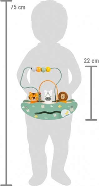 Dieses vielseitige motorische Labyrinth mit Schaukel ist das ideale Werkzeug für Kinder, die lernen und gleichzeitig spielen möchten. Das Spielzeug besteht aus robustem Holz und enthält zwei Drahtschleifen mit bunten Perlen. Die Schleifen fördern das Training der feinmotorischen Fähigkeiten und die Hand-Augen-Koordination kleiner Entdecker.