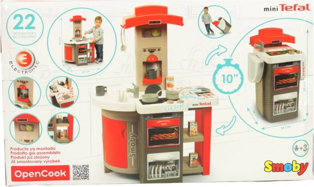 Diese kompakte, platzsparende Küche entführt Kinder in die Welt des echten Kochens. Dank der elektronischen Effekte der Kochplatten mit Koch-Imitation und den drehbaren Knöpfen mit charakteristischem „cric-crac“-Geräusch wirkt das Spiel noch realistischer. Praktische Ablagen und Abtropfgitter halten sämtliches Zubehör griffbereit.