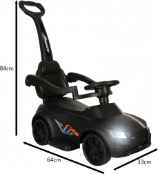 Stylisches Kinderauto im Renn-Design vereint die Funktionen eines Rutschfahrzeugs und einer Schiebehilfe. Dank der stabilen Kunststoffkonstruktion, des bequemen Sitzes mit hoher Rückenlehne und seitlichen Sicherheitsbügeln ist es ideal für die ersten Fahrten drinnen und draußen. Lichter und Sounds verleihen der Fahrt die Atmosphäre eines echten Rennens.