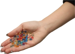 Diese Hydrogel-Kügelchen quellen nach dem Einweichen schnell auf und erhalten eine glatte, elastische Oberfläche. Dank der universellen Größe von 7–8 mm eignen sie sich ideal für Spielzeuge und Gelblaster/Pistolen. Gleichzeitig dienen sie als dekorative Füllung für Vasen oder für sensorische Aktivitäten von Kindern.