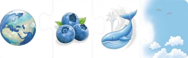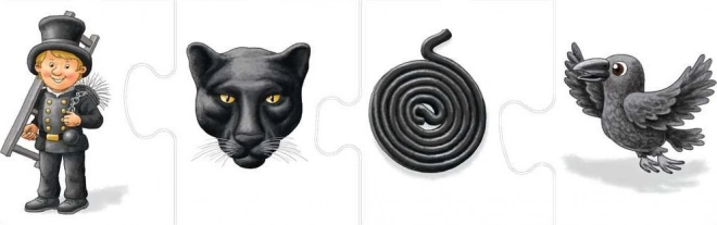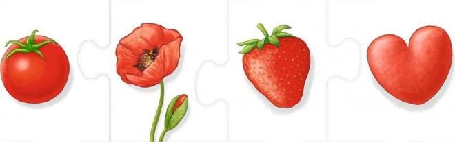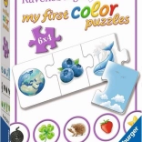 Jedes Minipuzzle stellt eine Farbe mit thematischen Bildern dar, die sich Kinder leicht merken und benennen können.