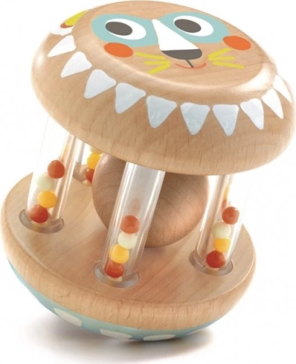 Die Holzrassel mit Perlen und Kugel lässt sich leicht von Kinderhänden greifen. Abmessungen der Rassel: 5,6 × 5,6 × 6 cm.