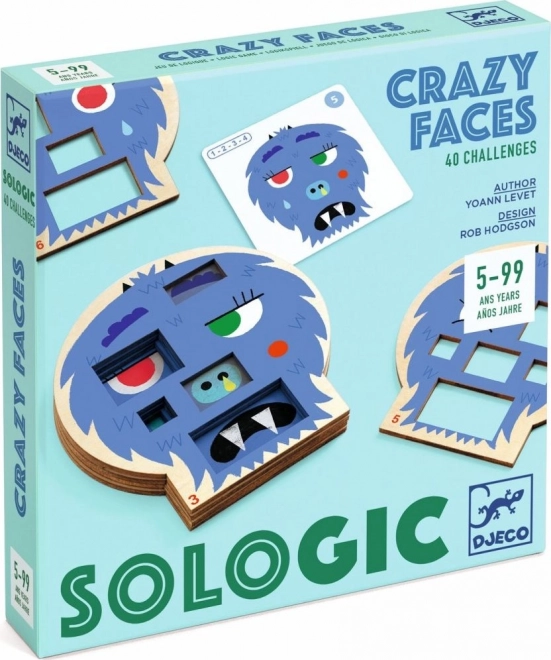Sologic Verrückte Gesichter ist ein unterhaltsames Knobelspiel, in dem Kinder den Gesichtsausdruck eines nur leicht gruseligen „Monsters“ aus stabilen Holzgesichtern so zusammensetzen, dass er exakt der Aufgabenkarte entspricht. Jede Karte hat genau eine Lösung, und der Schwierigkeitsgrad steigt nach und nach – das Spiel wächst mit dem Spieler mit.