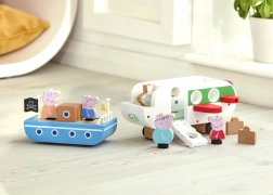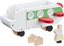 Das Holzflugzeug PEPPA WUTZ ist ein hochwertiges Spielzeug, inspiriert von der beliebten Serie. Dank der kompakten Maße liegt es gut in kleinen Händen, fährt sanft über den Boden und durch die zu öffnenden Türen können kleine Pilotinnen und Piloten Figuren und Koffer leicht verladen.