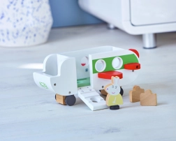 Das Flugzeug besteht aus umweltfreundlichem FSC-Holz mit strapazierfähigem Farbdruck. Es fördert die Fantasie, die Feinmotorik und das selbstständige Spielen von Kindern ab 2 Jahren. Im Set enthalten sind eine Figur von Frau Kaninchen, 2 Koffer und ein Cockpit mit 4 Sitzplätzen – startklar für den sofortigen Abflug.