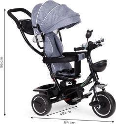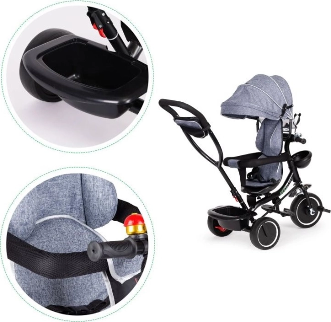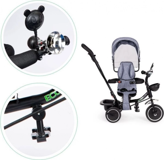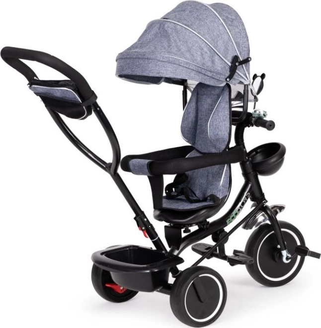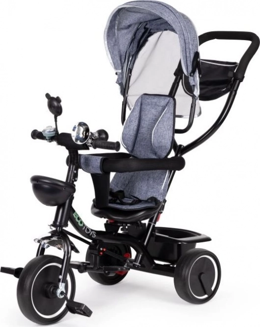 Das Dreirad ECOTOYS sorgt für Komfort dank der weichen Rückenlehne und den Sicherheitsgurten. Das abnehmbare Verdeck schützt vor Sonne oder Regen.