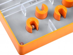 Wenn das Spiel zu Ende ist, können Sie die Kugeln in einem speziellen Fach verstauen, damit sie nicht in der Tasche oder im Rucksack klappern. Dank seiner Größe ist das Spiel leicht tragbar – ideal für Reisen, im Wartezimmer, in der Schule oder beim Warten auf den Bus.