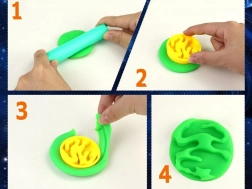 Erkunden Sie das Universum der Kreativität mit diesem erstaunlichen Set, das künstlerische Fähigkeiten mit Lernen kombiniert. Kinder haben die Möglichkeit zu rollen, zu kneten und Formen aus Modelliermasse zu kreieren, was ihre Feinmotorik fördert. Während des Gestaltens lernen sie das Sonnensystem kennen, was ihr Wissen und ihre Fantasie erweitert.