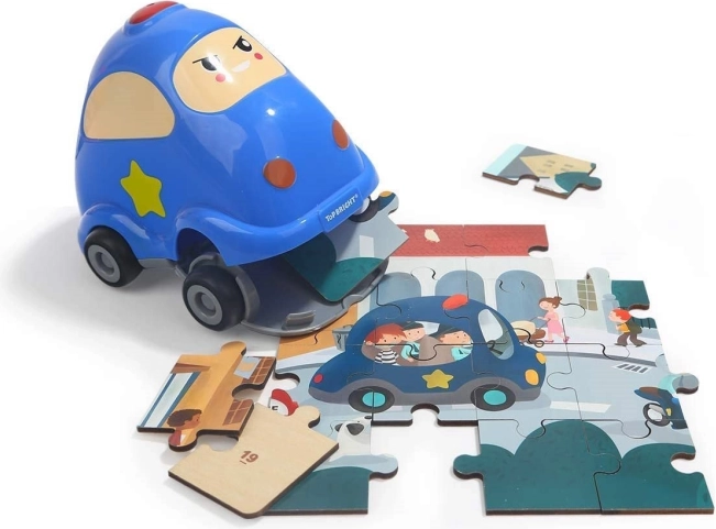 Entdecken Sie die Freude am Puzzeln mit TOP BRIGHT: Im Inneren des niedlichen Polizeiautos verbirgt sich ein hochwertiges Holzpuzzle mit Verkehrsmotiv. Das Auto besteht aus robustem Kunststoff, hat funktionierende Räder und auf der Unterseite einen aufklappbaren Deckel, sodass alle Teile bequem direkt darin verstaut werden können.