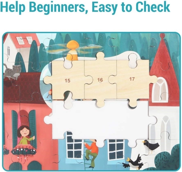 Die Mini-Serie ermöglicht das Verbinden der Randteile mehrerer Sets (Feuerwehrauto, Polizeiauto, Schulbus, Bulldozer, Helikopter, Schiff) zu einem Panoramapuzzle. Fördert Geduld, Hand-Auge-Koordination und selbstständiges Spiel.