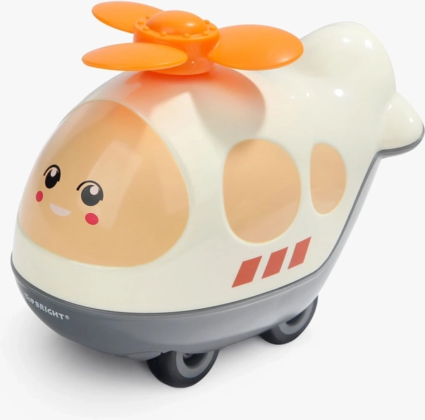 Der Kunststoff-Helikopter mit Rädern hat an der Unterseite einen aufklappbaren Deckel, sodass Kinder das gesamte Puzzle oder ihre kleinen Schätze darin verstauen können.