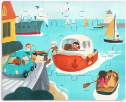 Entdecken Sie die clevere Verbindung aus Puzzle und Spielzeug in einem: ein Holzpuzzle mit Hafenmotiv, versteckt in einem niedlichen Kunststoff-Boot auf Rädern. Jedes Teil ist nummeriert für leichteres Zusammensetzen, fördert logisches und mathematisches Denken und dank des praktischen Stauraums haben Sie das Puzzle immer griffbereit. Perfekt als Ergänzung zur TOP BRIGHT Mini-Serie der Fahrzeuge und ergibt ein Panorama-Puzzle.