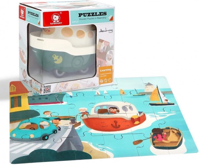 Das Kunststoff-Boot mit niedlichem Gesicht ist ein voll funktionsfähiges Spielzeug. Der Boden lässt sich öffnen und fasst das gesamte Puzzle oder andere kleine Schätze.