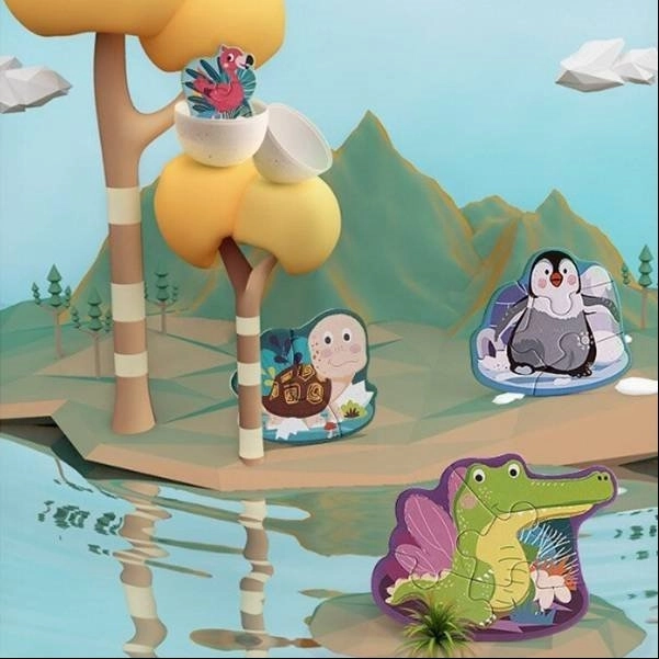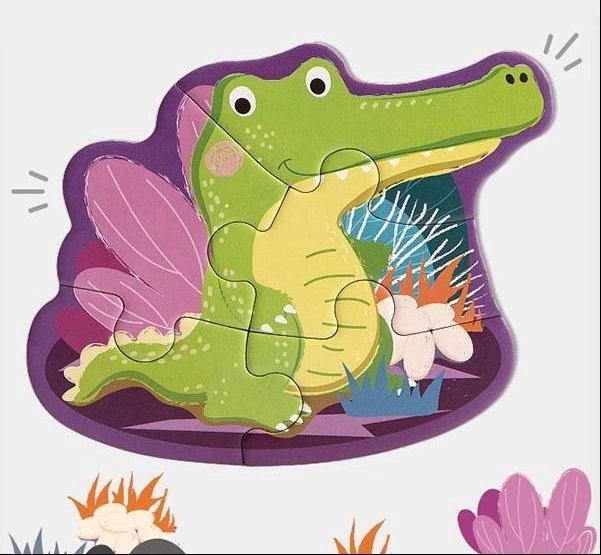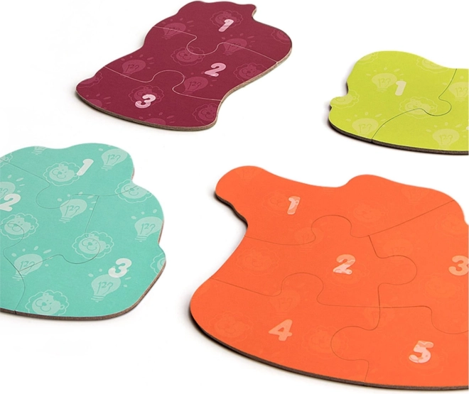 Dieses verspielte Set enthält 4 Tierpuzzles mit unterschiedlichem Schwierigkeitsgrad (2, 3, 4 und 5 Teile) und passt sich so ideal dem Tempo Ihres Kindes an. Die Teile sind groß, robust und angenehm zu greifen – perfekt für die ersten Puzzelschritte.