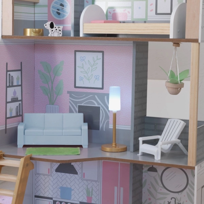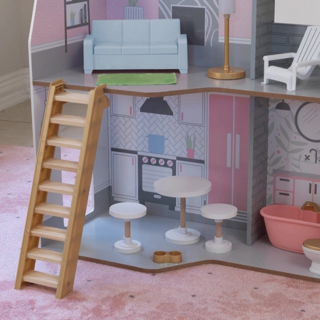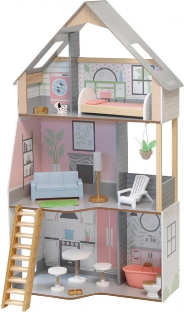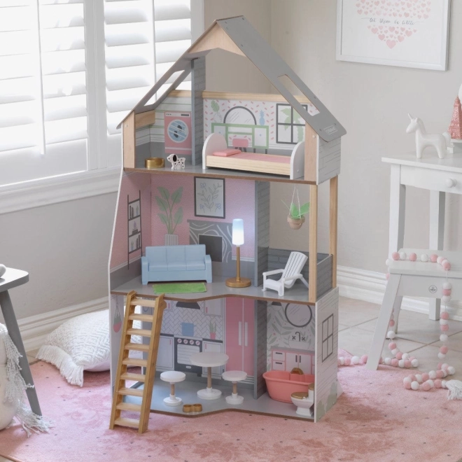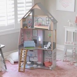 Das KidKraft Alina Puppenhaus aus Holz bietet Kindern eine realistische Umgebung zur Entfaltung ihrer Fantasie. Die drei durchdachten Etagen umfassen eine großzügige Küche mit Essbereich, ein Wohnzimmer mit Veranda sowie ein gemütliches Dachgeschoss mit Schlafzimmer und einem zweiten Badezimmer. Dank des schlanken Grundrisses eignet es sich hervorragend auch für kleinere Kinderzimmer.