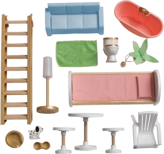 Im Lieferumfang enthalten sind 15 farbenfrohe Möbel- und Zubehörteile, sodass Kinder jedes Zimmer sofort nach ihren Vorstellungen einrichten können. Die hochwertige Kombination aus Holz und robusten Kunststoffen garantiert eine lange Lebensdauer und sicheres Spielen ab 3 Jahren.