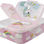 Stylischer Multi-Snackbox mit fröhlichem Einhorn- und Regenbogenmotiv hilft Kindern, Speisen übersichtlich getrennt und frisch aufzubewahren. Drei separate Fächer sind ideal für Obst und Gemüse, Sandwiches sowie kleine Leckereien. Die stabile Konstruktion widersteht alltäglichen Stürzen und Stößen, sodass die Box perfekt für den täglichen Einsatz geeignet ist.