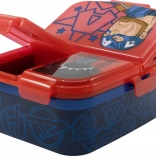 Die Avengers-Brotdose ist aus robustem Kunststoff gefertigt und hält dadurch Stößen sowie normaler Abnutzung stand. Zwei Ebenen ermöglichen eine abwechslungsreichere Anordnung der Speisen: Das Hauptfach ist für größere Mahlzeiten vorgesehen, während die obere Ebene drei separate Fächer für kleinere Snacks bietet.