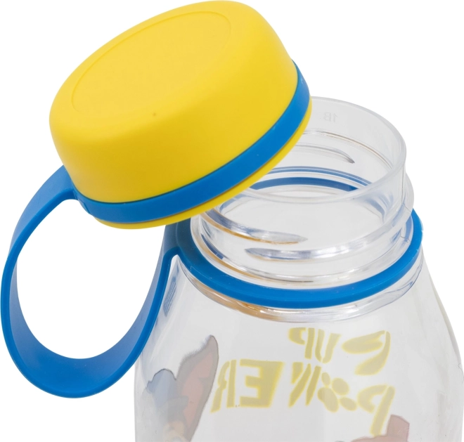 Die Flasche ist mit bunten Charakteren aus der Serie Paw Patrol verziert, die von Kindern geliebt werden.