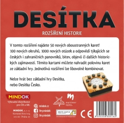 Beleben Sie Abende mit Familie oder Freunden und erweitern Sie Desítka um neue historische Kategorien. Die Erweiterung Geschichte bereichert das Spielerlebnis mit vielfältigen Themen – von tschechischen und internationalen Herrschern über berühmte Schlachten bis hin zu bedeutenden Entdeckungen. Dank der großen Menge neuer Fragen ist langanhaltender Spielspaß garantiert.
