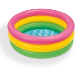 Gönnen Sie Ihren Kindern Spaß in der Sonne mit diesem aufblasbaren Pool, der ideal für Outdoor-Wasserspiele ist. Der Pool ist aus dauerhaftem Vinyl gefertigt und mit drei Ringen in fröhlichen Farben ausgestattet. Mit weichem aufblasbarem Boden ist er bequem und sicher für Kinder, die es lieben, im Wasser zu planschen.
