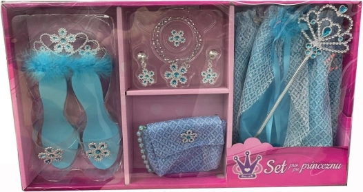 Dank der aufeinander abgestimmten blauen Farbgebung lässt sich das Set leicht mit weiteren Accessoires kombinieren. Es eignet sich hervorragend als Geschenk für Mädchen, die Märchen und Verkleiden lieben.