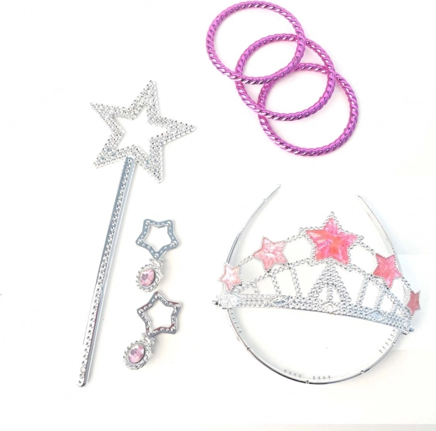 Dieses Prinzessinnen-Zubehörset ist die perfekte Wahl für alle kleinen Märchenliebhaberinnen. Dank der Kombination aus Krone, Ohrringen und Armbändern verwandelt sich jedes Spiel ganz leicht in ein königliches Abenteuer.