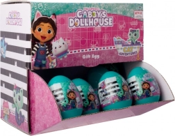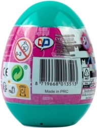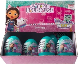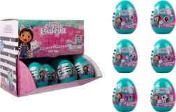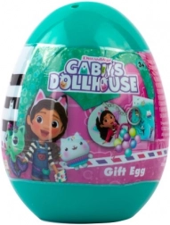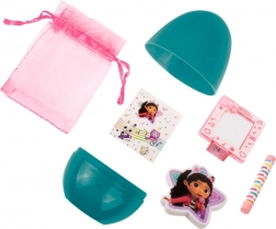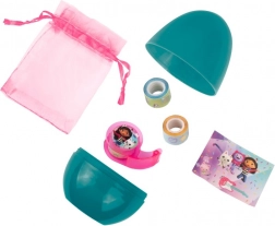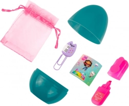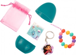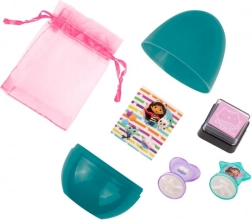 Das türkisfarbene Ei verbirgt thematische Überraschungen aus der märchenhaften Welt von Gabbys magischem Häuschen. Kinder freuen sich über niedliche Aufkleber, einen Schlüsselanhänger, ein Armband, ein kleines Stempelchen oder Dekobänder sowie einen rosa Beutel zur Aufbewahrung von Schätzen. Alles ist in fröhlichen Farben gehalten und bereit für Spiel und Kreativität.