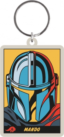 Robuster Schlüsselanhänger mit markantem Helm-Motiv und dem Schriftzug Mando – praktisches Accessoire für Fans im Alltag.